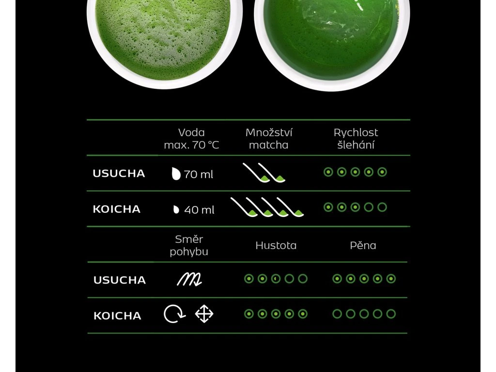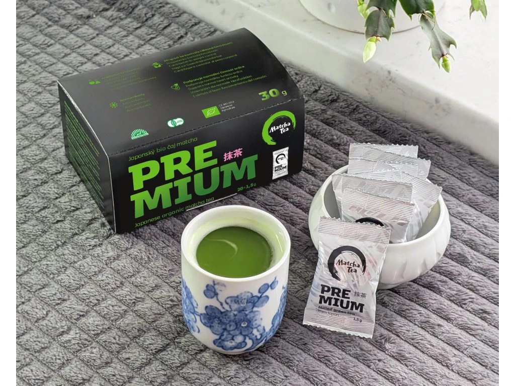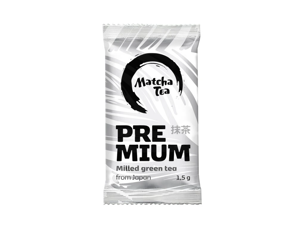 Vyskúšajte Premium matcha v jednom 1,5g vrecúšku. Premium je ručne zbieraná matcha s intenzívnou chuťou — používa sa menej vody (150 ml) pre plnšiu chuť.