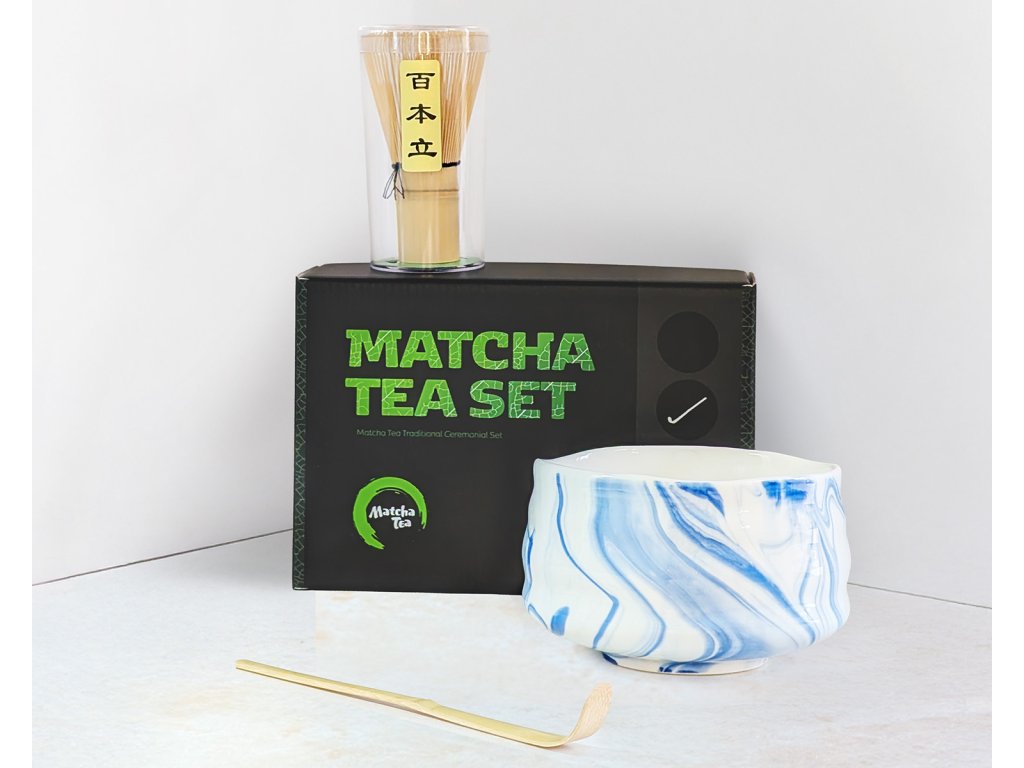 Kompletná sada na tradičnú japonskú prípravu matcha. Obsahuje ručne robený chawan Hiroki (ručne robený v čiernom prevedení s jemnými prasklinkami), bambusovú metličku chasen (80 prútikov) a Bio Matcha Tea Ceremony 30 g v plechovej dóze. Všetko, čo potrebujete na autentický japonský čajový zážitok.